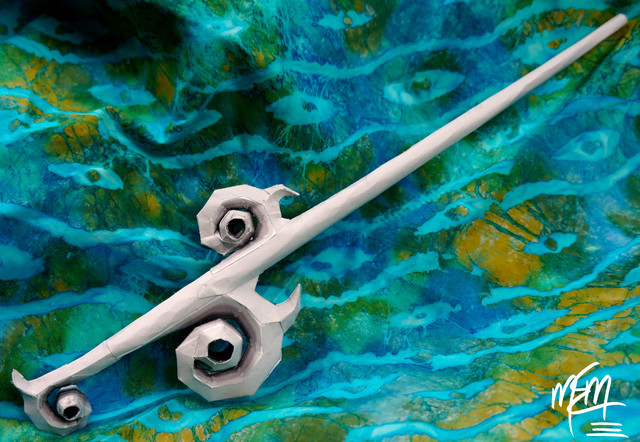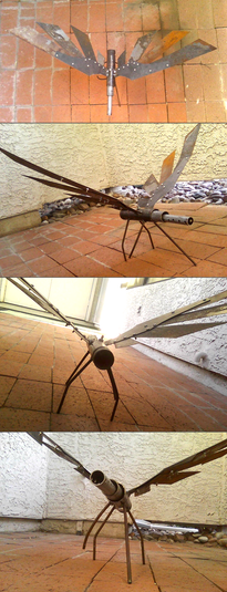 The "Flapter" flying machine used by the Dola gang in Castle in the Sky. Made entirely out of paper. This model is definitely not for a beginner papercrafter. It has many extremely small parts as you can see from the inside and on the dashboard/control panel. Also I display mine hanging with some fishing line so it looks like it's in flight.Template: [link]