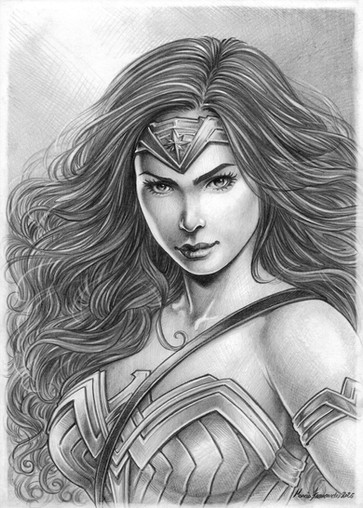 Colored pencil and airbrush of Wonder Woman featuring the likeness of Jennifer Lawrence.Related content