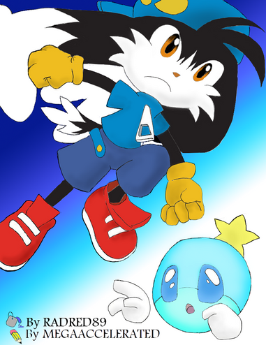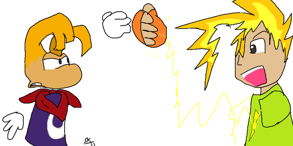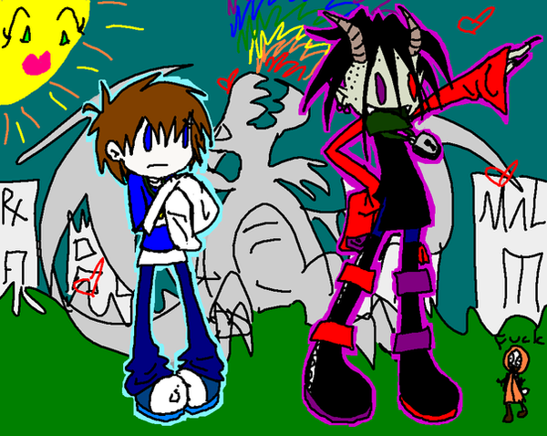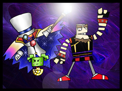 Pretty cute. I like how Billy is unamused by his antics. Nice work on the drawing. The colors came out pretty well. But I do like what you did with those moving lights and how they leave a trail behind. Sweet. =3
