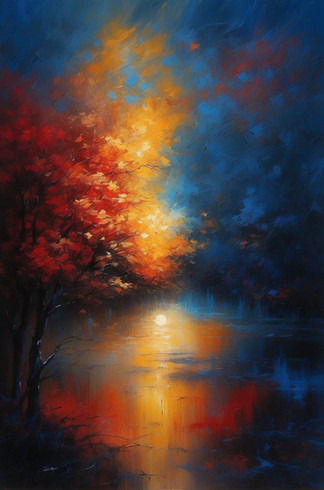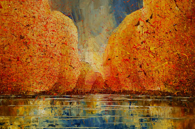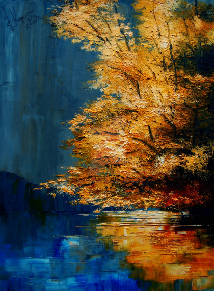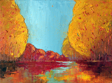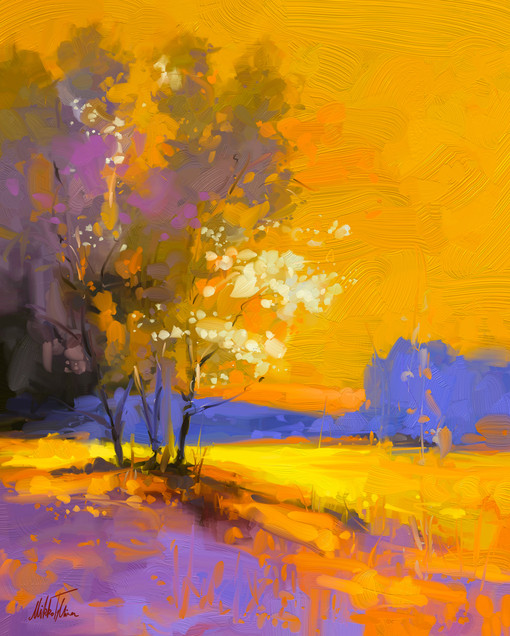Quite abstract but still recognizable as Autumn trees. The splatter texture gives it vitality.