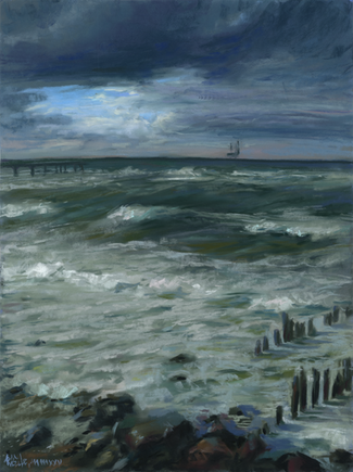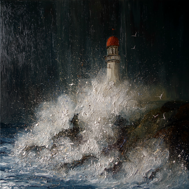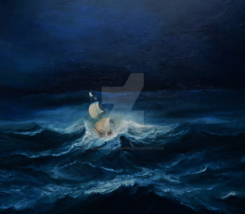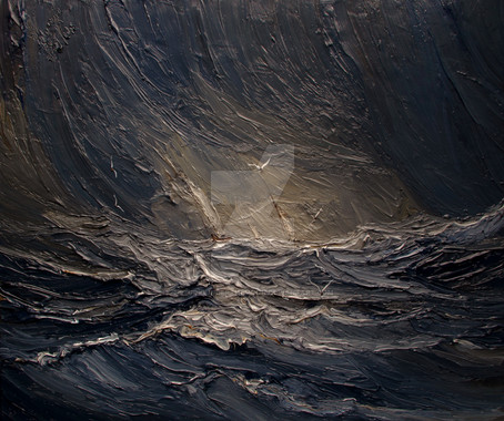 Wow! I love the textures in this one; the sea looks alive and intense; the sky looks vivid and windy... Truly a breathtaking painting!