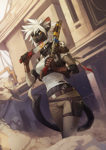 #action #anthro #anthroart #cat #female #furry #furryart #furrycat #furryfemale #weapon #furryfeline #digitalpainting #furryanthro