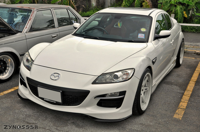 Spotted this RX8 yesterday and captured it with my phone.Mazda's RX series of cars use the rotary Wankel engine first seen in their A110 Cosmo in the 1960s. (Rotary eXperimental)
