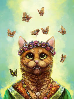 Pet portrait commission for TinyMightyMeow of her cat Cupcake the Wild Princess! This is the second part of a triptych series of cat royalty. I was given the prompt "Wild Princess" and given a ton of creative liberty to interpret that however I wanted and we decided to put a forest/nature spin on it. It was so much fun trying to come up with and design the concept for her crown, dress, and especially the throne! I'm a huge fan of mushrooms and I'm glad that she let me throw a few in there haha! The next one is going to be cloud themed so stay tuned to see how I figure out how to design a throne made out of clouds 🤩☁️!Related content