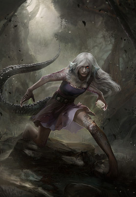 Wanted to kick off the new year strong and what better way to do that than with a Dragon OC painting! This was a commission for Katoo on twitter of their OC Emilia. This painting was like a good book, I just COULD NOT put it down!! You guys ever have paintings like that? ⠀The scene was described to me as follows, "She got her powers accidentally and has since then been imprisoned in a research facility and abused for weapon experiments. She was able to escape but ended up injured in the middle of a jungle. She wants to clean her self in a little waterfall and in this moment she hard a noise. She should look like threatened wild animal that is focusing its prey."