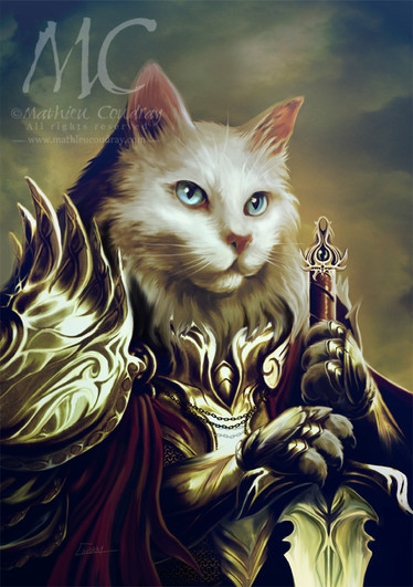 Introducing his Imperial Majesty, Sir Sora of the Knights of the Nethers, King of the Skylands and son of the chickens. This was a raffle portrait for a member of our community of their beautiful cat Sora who I was requested to turn into royalty. For this one I wanted to do a warrior king with the full armor set! I'm really enjoying these royal cat portraits haha! For this one I really wanted to play around with a more intimate light setup. I tried to create the effect of a soft, diffused spotlight on the center of the composition to draw the eyes to the focal point and then let everything else just kinda go into shadow on the edges. Pretty happy with how it turned out!