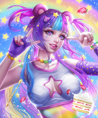 This current month’s raffle winner was @silverwolf0101 who requested an image of her OC Sienna. Sienna is a bright/bubbly character with rainbow hair. She was such a fun character to bring to life!