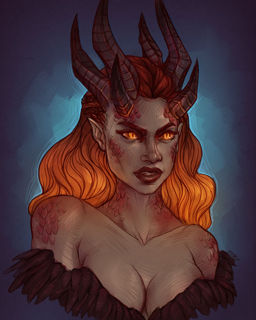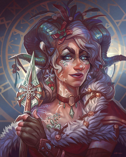 As part of the DeviantArt Collective we had the opportunity to join a secret santa art exchange with the rest of the collective members! I drew sylessae for my secret santa and I couldn't have been more excited because Syl has been an enormous inspiration for me since the moment I started streaming! If you don't know Syl's work give her a watch because she is AMAZING! This is my small tribute to her and her beautiful horned ladies! We were told to only spend a couple hours on these and it took every ounce of self control I have not to want to paint this. Also, I may have gone overboard with the amount of horns haha.Related content