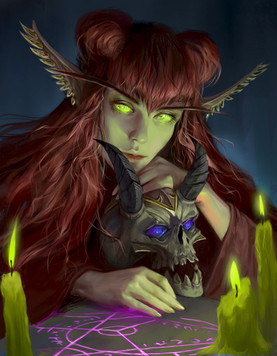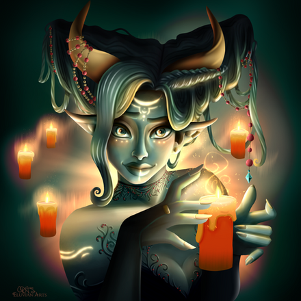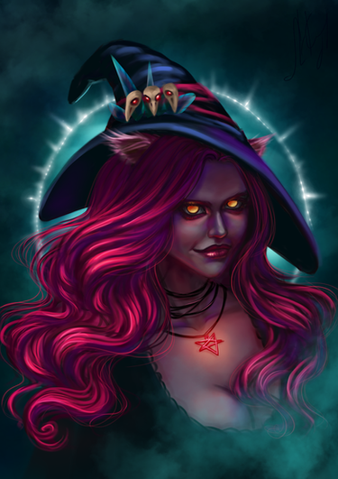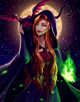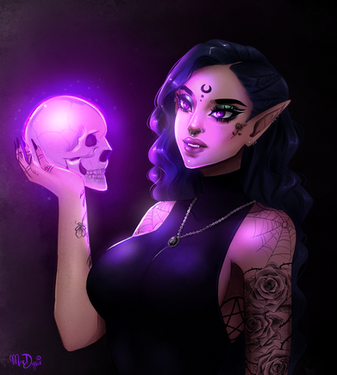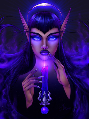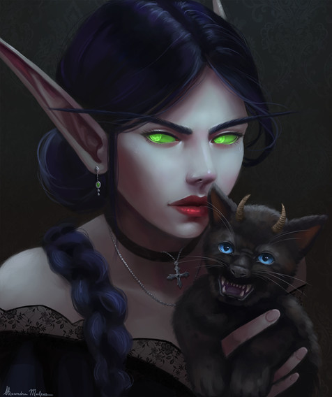 Recent commission I finished of a Vampire Elf Witch and her black cat. Really enjoyed pushing the lighting in this one and having some fun with the magic fx.Related content