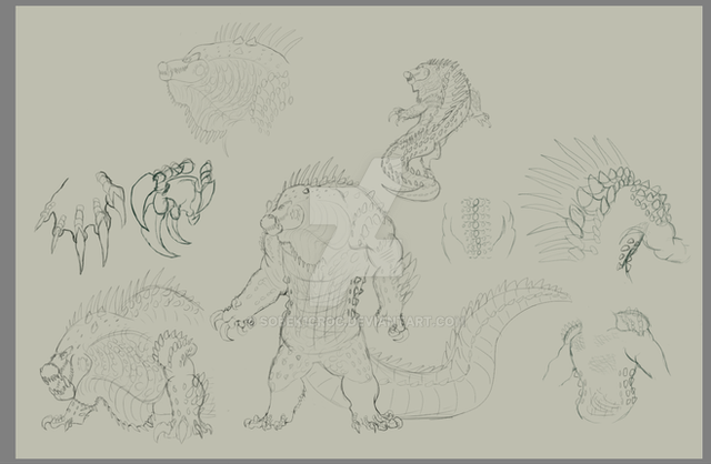 Basic quick reference of my monster... fursona? Doesn't have a name yet. He's a strange mix so just going to go with 'chupacabra' (maybe with a hint of kaiju) as species. :3Not sure if the paws will be gray or green yet... I like the inside of the ears and mouth being green too but not too sure until the main color of fur arrives and i see how it actually looks together.