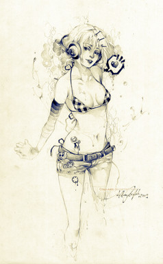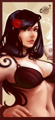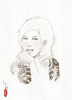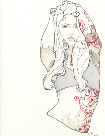 I really like the colors, her tattoo, her posture and expression... I like this drawing!