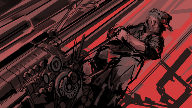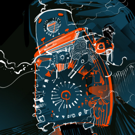 hmm, on close inspection i rekon his heads a bit Too small. Without full view i read the image as the whole 'neck' section being the head. But other than that, its a f*ing wicked pic. The dynamics and sense of movement are excelletn and i love this angular style you've got. Throw in the colour work and some all round nice presentation, and its a pretty sweet pic'.