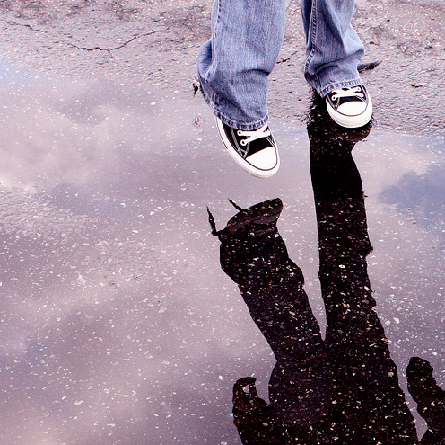 Cool! Not many would notice that puddle, and even less make a great picture out of it. I really like the shoes and the reflection in the water