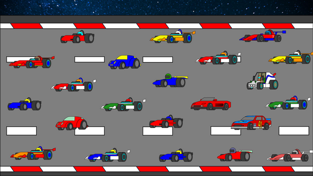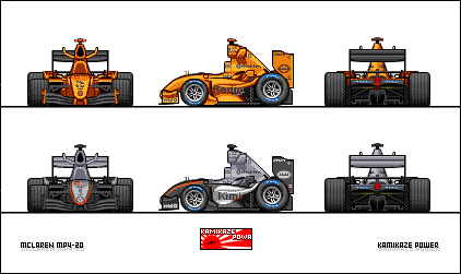 Isn't Ferrari the old one? Now it has a "Nose -thing" like ethe Renault has in that picture... Also, the cars look very big because of the siny drivers inside I think.