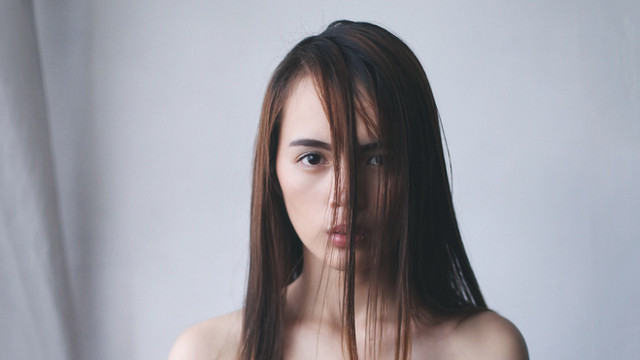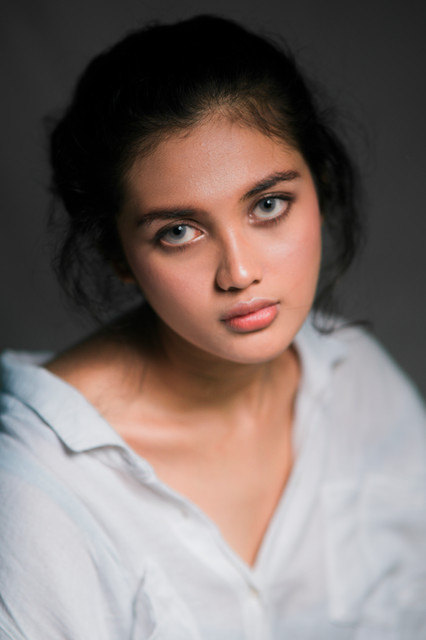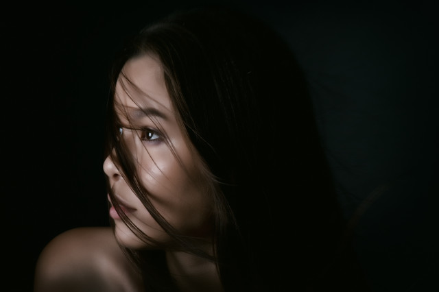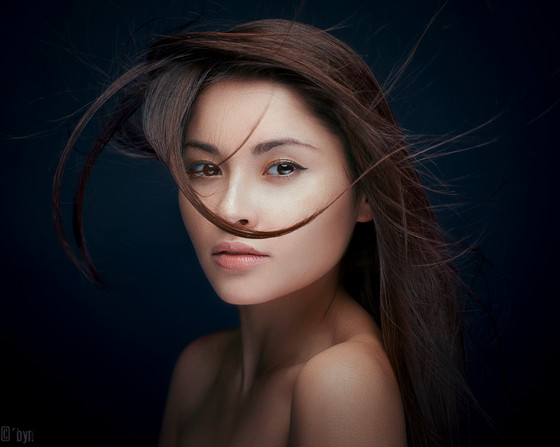 There is a smoldering darkness in the image which matches the model's stare. Well conceived.