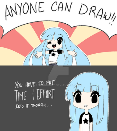 How about when you draw a figure and before you can even think of designing the clothes, people ask if you're drawing nudity. Well that doesn't happen to me anymore but in elementary my classmates would always do that XD