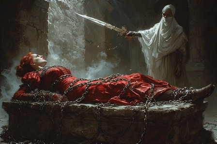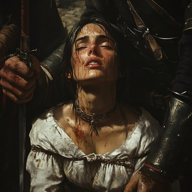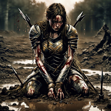 #medieval #aftermath #arrow #atmosphere #blood #crimson #distant #dramatic #fabric #fallen #fatal #field #heroine #mist #moment #reenactment #ritual #robes #shrouded #silent #somber #sorrow #stained #tableau #tension #tragic #undertones #witness #wound