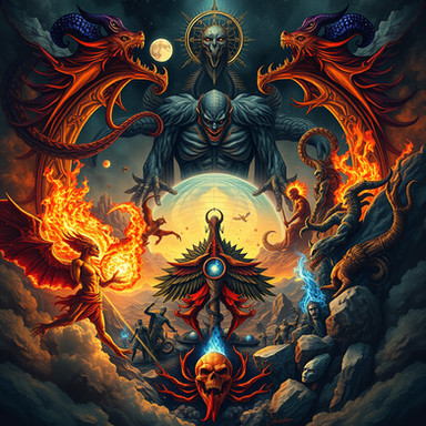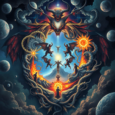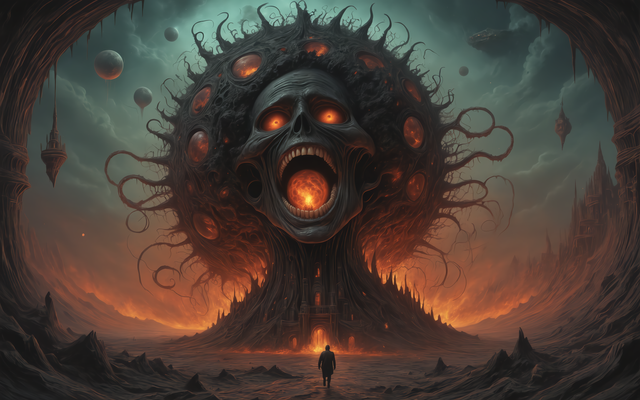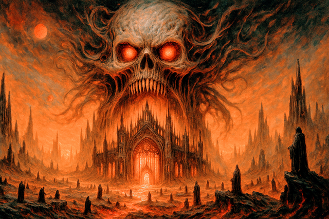 #apocalyptic #architecture #catastrophe #choir #communion #cosmic #crown #dominion #dread #eclipse #eerie #eldritch #fantastical #fossil #gothic #horror #judgment #lunar #maw #moons #nightmarish #planetary #reverent #ritual #skeletal #skull #spikes #surreal #theology #thrones