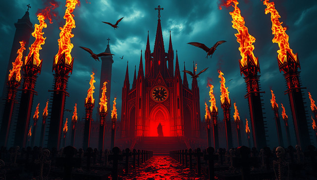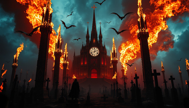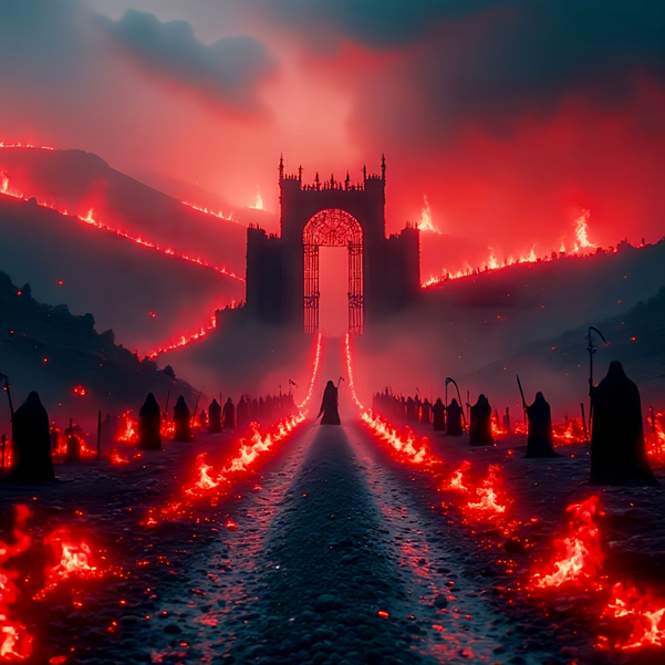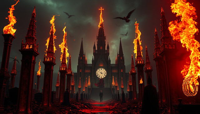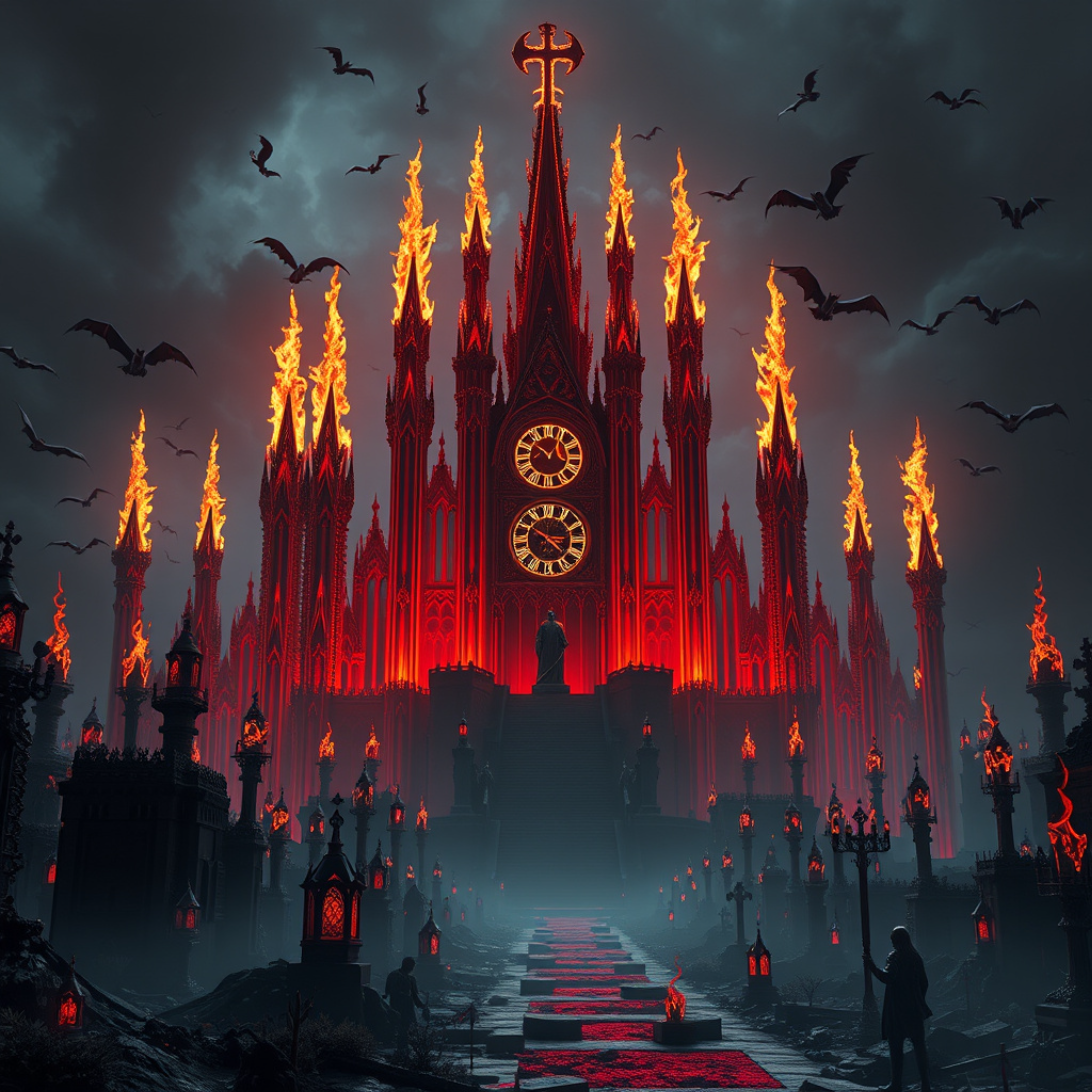 #ashen #benediction #burning #cathedral #clock #creed #crimson #ember #end #flame #flames #gate #gothic #halo #infernal #judgment #keepers #lit #molten #oath #path #procession #red #ruin #sanctuary #sanctum #spires #wake #window #fire
