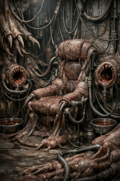 #horror #body #chamber #claustrophobic #cosmic #device #dread #drenched #engine #extractor #flesh #grotesque #harvest #interface #memory #nightmarish #node #operator #oppressive #restraint #ritualistic #sacrificial #saturated #seat #silent #sovereign #suffering #symbiosis #throne #viscera
