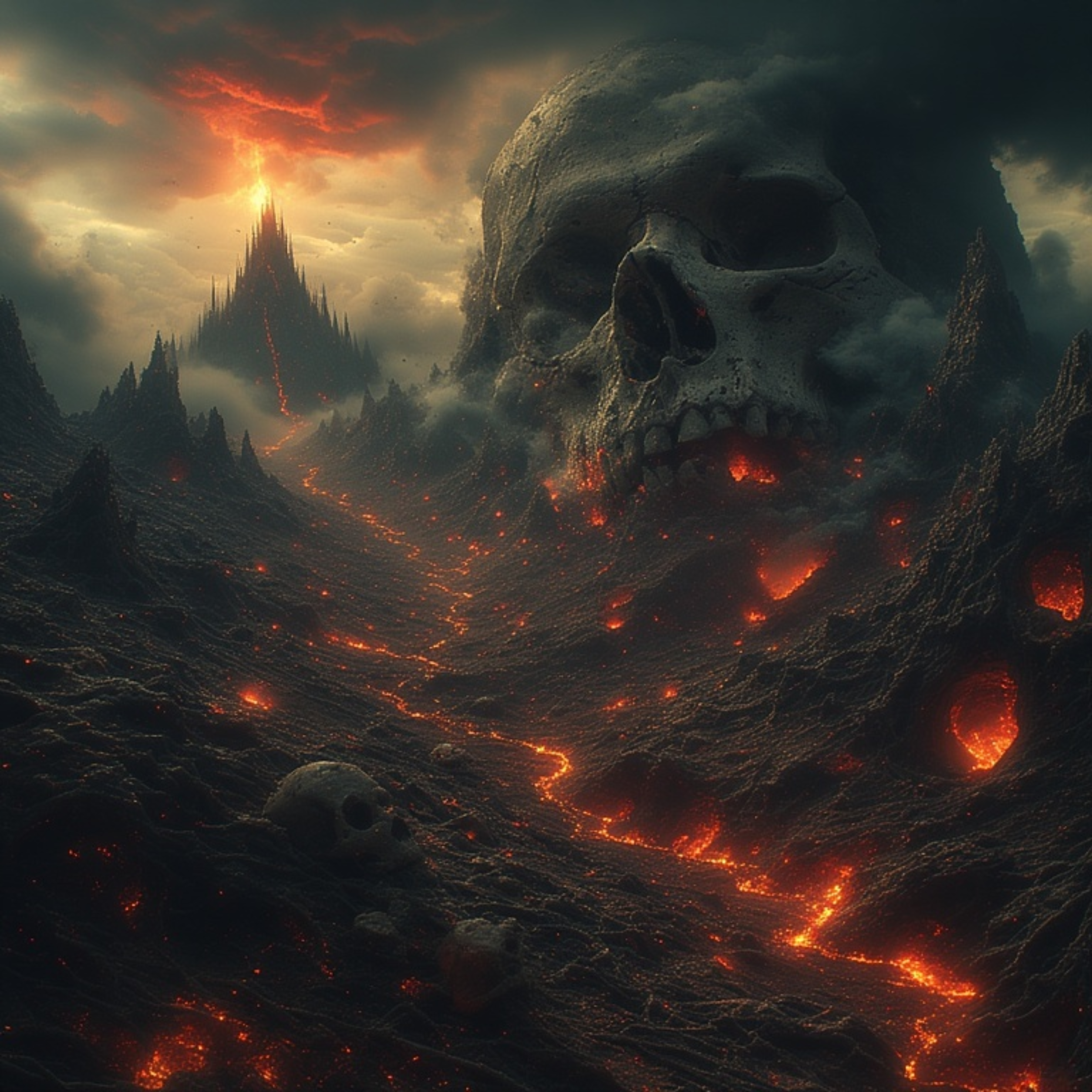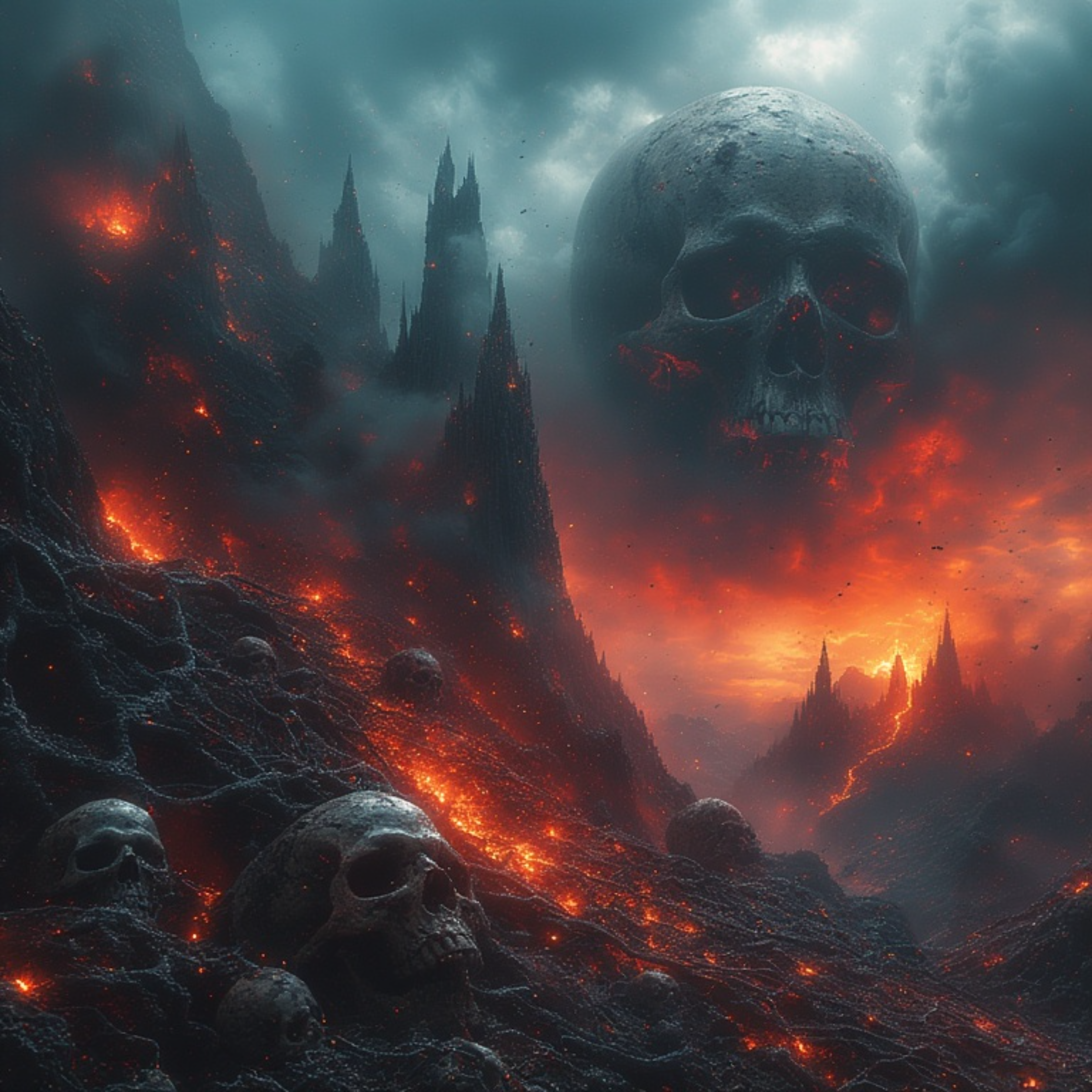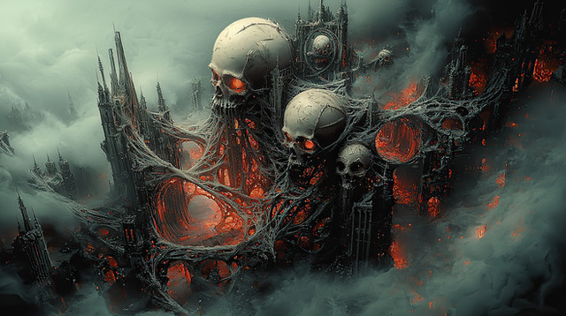 #ai #apocalyptic #architecture #bone #burst #cavernous #citadel #death #decay #dread #ember #glow #horizon #horror #infernal #mythic #necrotic #realm #ritualistic #scape #scorched #skull #soaked #spiked #storm #supernatural #tension #terrain #void #fire