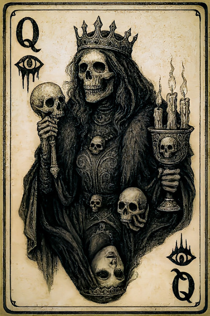 #skull #digitalart #gothic #tattoo #horror #ai #cardgame #cards #casino #chance #clubs #creepy #death #diamonds #fortune #gamble #goth #hearts #luck #macabre #magic #misfortune #morbid #poker #slots #spades #vice