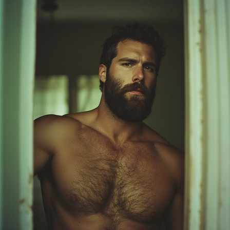 #digitalart #portrait #body #beard #damp #hairychest #muscle #shaving #shirtless #sweat #aiart #aiphotography #ai_photography