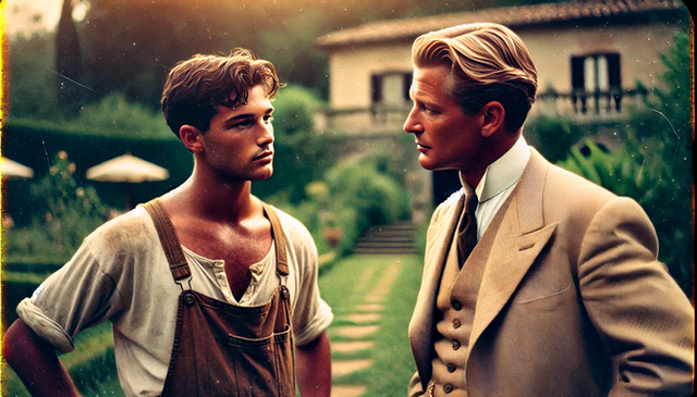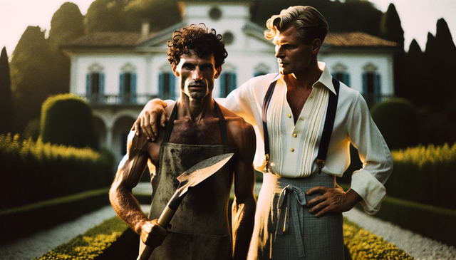#vintage #digitalart #portrait #body #filmphotography #bowtie #garden #italy #shirtless #spade #tension #villa #aiart #aiphotography #ai_photography