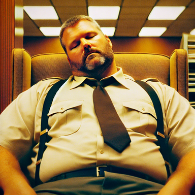 #armchair #beard #chubby #muscle #nap #police #uniform #oldermale #policeuniform #aiart #chubbymale #aiphotography #ai_photography