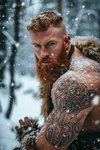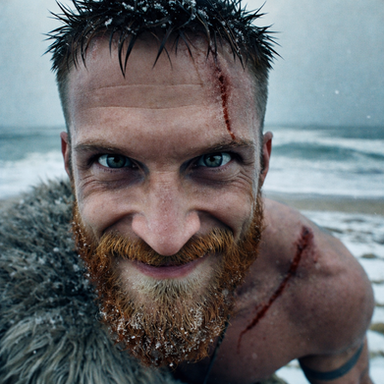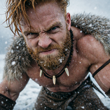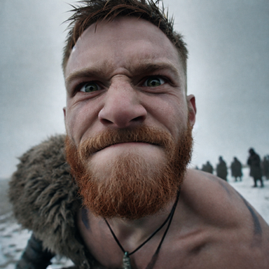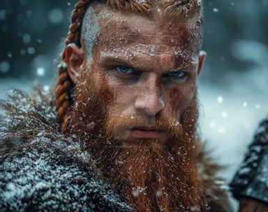 #digitalart #portrait #warrior #barbarian #beard #cinematic #drama #filmphotography #redhead #snow #viking #aiart #aiphotography #ai_photography