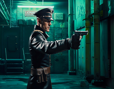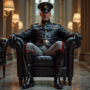 #digitalart #military #militaryuniform #arms #bald #baldhead #boots #muscle #neon #neonlight #threatening #aiart #baldmale #aiphotography