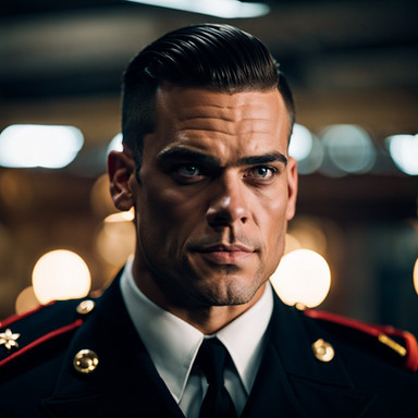 #digitalart #portrait #militaryuniform #military #bald #baldhead #tie #wristwatch #aiart #baldmale #manspread #aiphotography #ai_photography