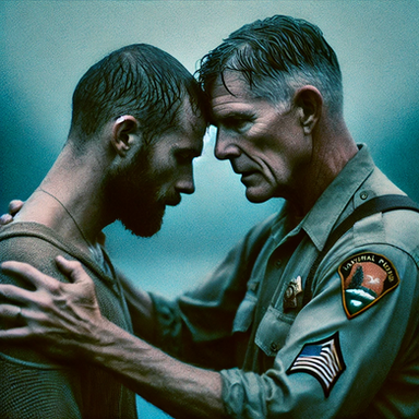 #drama #digitalart #bald #baldhead #beard #cinematic #creek #dusk #filmphotography #oldermale #aiart #baldmale #aiphotography