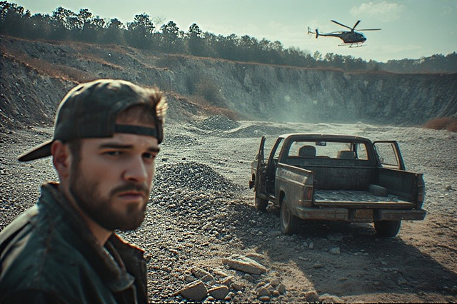 #filmphotography #cinematic #drama #helicopter #kiss #kissingcouple #movie #pickuptruck #portrait #pickup_truck #gravel_pit
