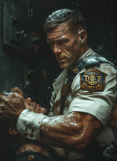 #digitalart #drama #portrait #beard #cinematic #filmphotography #ranger #rescue #shirtless #uniform #aiart #aiphotography #ai_photography