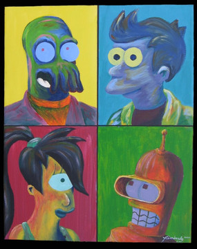 Futurama and The Simpsons featured in the same piece of artwork. Could this be a conspiracy or a cross-over in the works? I guess we'll just have to wait and see.