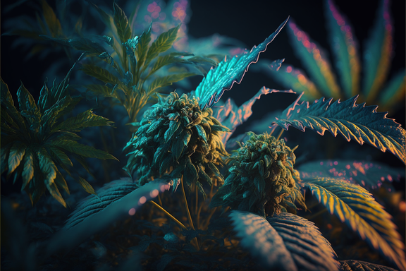 I don't even know where to start with this. Not only are dark, minimally lighted compositions hard to pull off, they're a pain in the ass. This is FLAWLESSLY executed. I love the mysterious feel and mood to it, almost as if the viewer has found something. The rhythm is apparent here, it moves you around the top layer of leaves and down to the next, and down to the next. The colors are absolutely perfect, not the bright green we're all accustomed to seeing but a deep forest green, which is an original change. Nonetheless, the viewer immediately recognizes this as a marijuana plant. A smoking bong faded into the background illuminated by soft light (candle lighting perhaps?) would be a nice touch and go along with the soft red background you have now, but it might take away the emphasis. Just a thought.