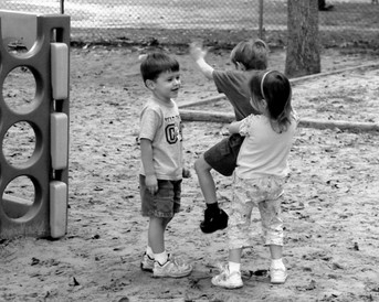 Aww. I saw this photo on a feature. I don't know if this was intended, but I see this photo telling the story of a frightened young boy finally brave enough to take the first step back into the world. The behind the back "following" of the photo shows this. Very nice.