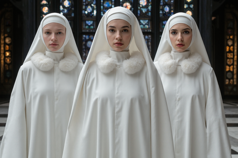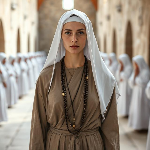 #ai #bonnet #chastity #cloister #convent #discipline #habit #modesty #nun #obedience #scared #dreamup