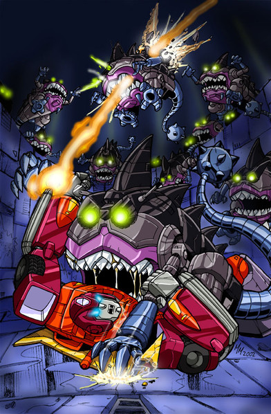 I love how Grimlock's using a sharkticon as a weapon.