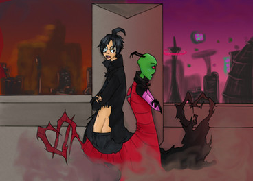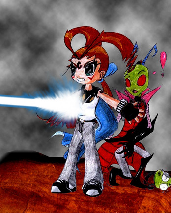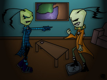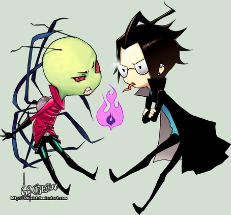 I'm in love with my new Zim keyblades ( [link] ) so I thought I'd have my future!Dib fight a heartless!Zim with his =OInvader Zim (c) Nick