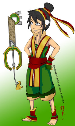 That's an intersting mix. I didn't know you were a kingdom hearts fan too. I can't wait for the second one to come out. -.- Nice job on the keyblade. You're really good at drawing Kim!