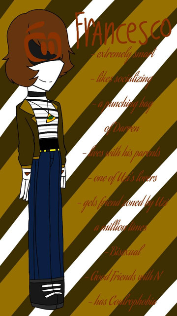 Sorry for not posting. I've been having issues with my head and stomach. I've also been busy.It's time to introduce the next oc cause I want to get this over with, lol.