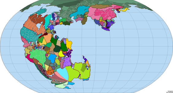 (Please, there are 57,740,000 pixels in that basemap. I'm not complaining, the detail was phenomenal, I just couldn't get every single square inch of terra nullis.)Again, it returns. I must say, Pacific-centering and then rotating 180 degrees really makes our Earth look like the Avatar planet. Of course it's not perfect; for example, I still have no idea where the Si Wong is meant to go. Damn Sahara Pump Theory. Nevertheless, I feel it has worked out splendidly otherwise, as long as you ignore the fact that the Northern Water Tribe is at the South Pole and vice versa (conceptions of north and south can change, okay? Besides, I feel it better suits the geography of the tribes as shown). Air Temples are at New Zealand, Ireland, Valdivian Andes, and Alaska, for Northern, Eastern, Western and Southern respectively. The Eastern and Western Temples look quite close on this projection, but remember, the full length of the Atlantic is between them. I suspect the Foggy Swamp is in SE Asia, Kyoshi Island off of Kamchatka, and Gaoling and Zaofu in China. Zaofu doesn't exist at the time this map shows, shortly before the Hundred Years War with the traditional borders, but the land exists. No idea where Ba Sing Se or the Republic would go.