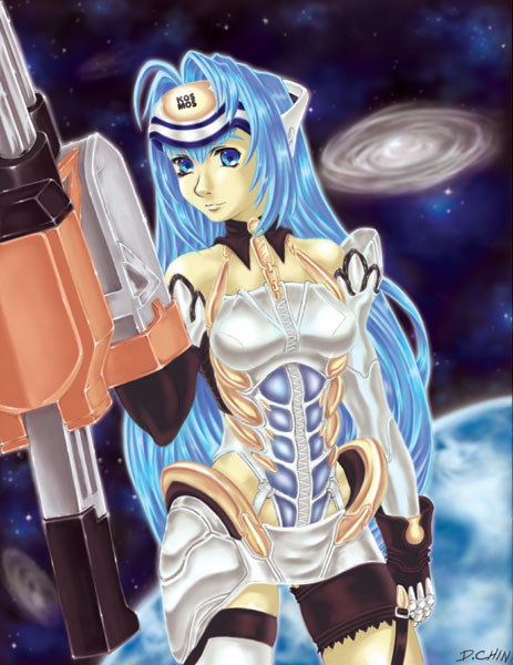 Mary, a humanoid combat weapon system AI. Found the AI system from a old relic from the sector S19-BXS90 (Ground Zero) where the History marks it's time of humans, and realians help fight against "Gnosis."||