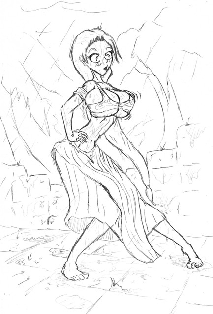 Secondly (and even I still have trouble doing this sometimes), Get the body shape, form and proportions right before adding clothes. An example here is how the legs appear slightly disjointed due to the hem of the dress.