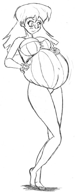 Is she preggers? She don't look fat, leg proportions would give it away.