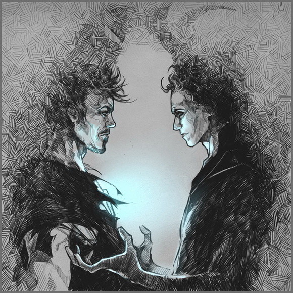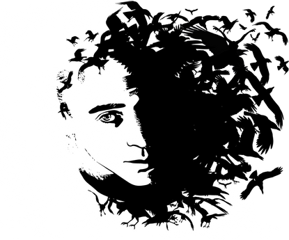 Waw, absolutely beautiful I just love the way the silhouette crumbles away, it creates an astonishing effect... sort of like Loki's perishing identity. The details are fantastic, and I just love the tangle of swirls and birds flying from the back of his head - awesome