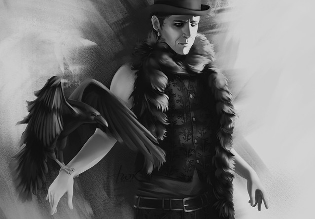 Oh... your ink artworks are stunning really... Love how the feathers make him a coat, and oh I love his expression. Well done!