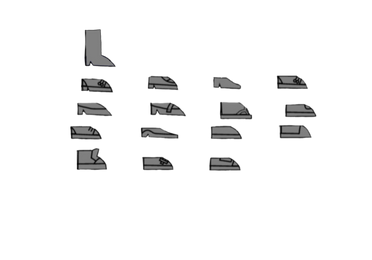 At certain angles they look like triangles, but at most they look curvy with a flat bottom. Added Tucker's gym sneakers for something different.